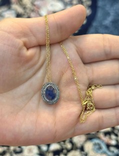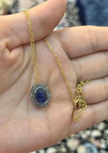 925 Gümüş, Doğal Safir v Elmas Kolye