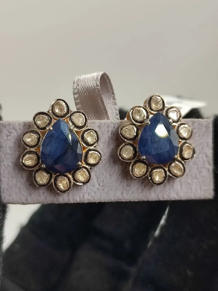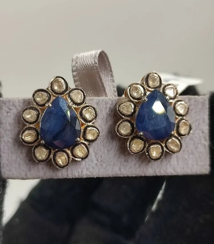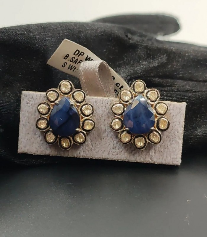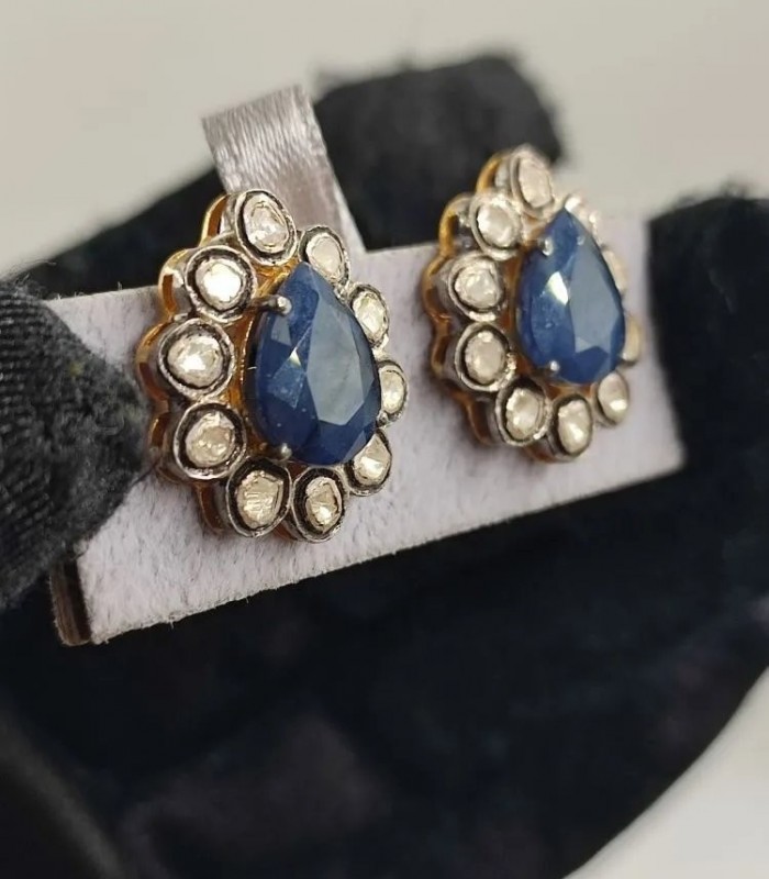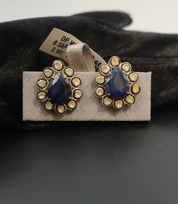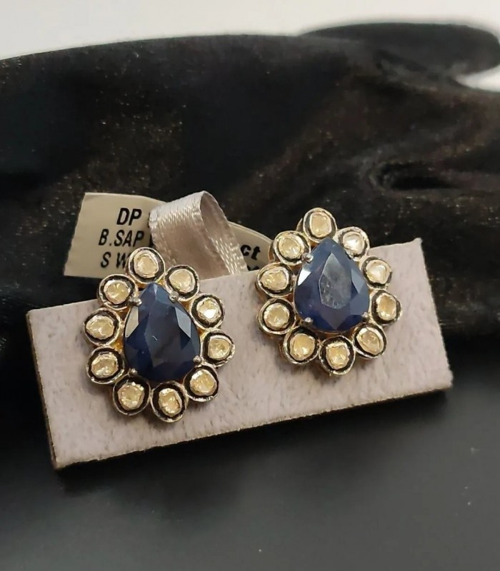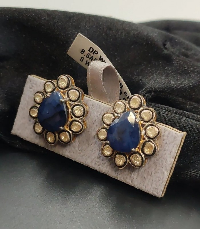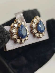 SAFİR ve POLKİ ELMAS KÜPE. İŞÇİLİĞİ HARİKA TAŞLARI ÜST KALİTE MÜTHİŞ KÜPELERDEN.