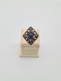925 Ayar Gümüş, Safir ve Elmas Yüzük
