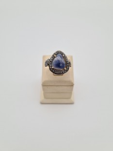 925 Ayar Gümüş, Safir ve Elmas Yüzük