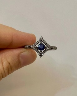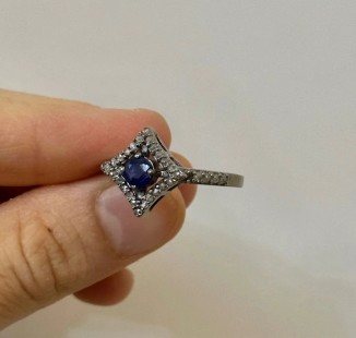 925 Gümüş, Safir v Elmas Yüzük
