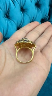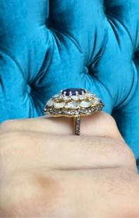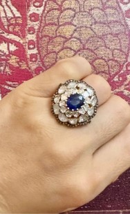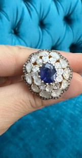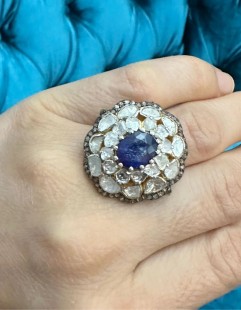 925 Gümüş Altın Kaplama, Safir v Polki Elmas Yüzük