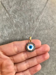 925 Gümüş Altın Kaplama, Sedef Nazar Tasarım Elmas Kolye