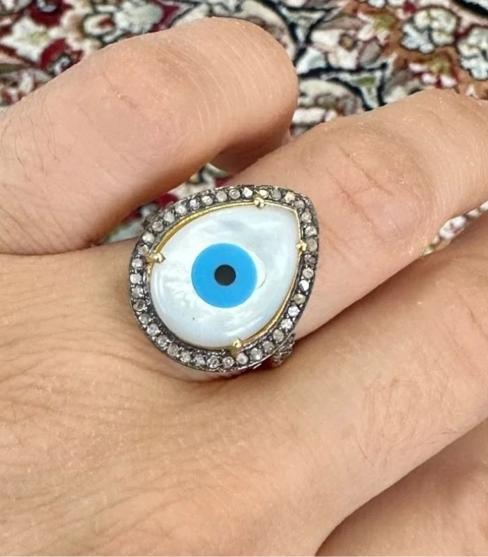 925 Gümüş Altın Kaplama, Sedef Nazar Tasarım Elmas Yüzük