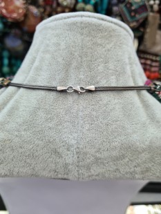 925 Ayar Gümüş, Sedef, Yakut ve Elmas Kumaşlı Kolye