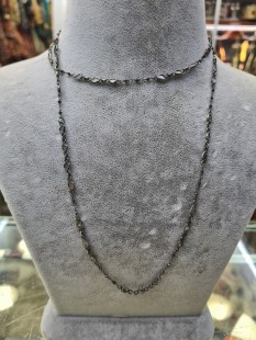 Siyah Elmas ve Düz Kesim Elmas Zincirli Kolye
