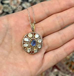 925 Gümüş, Doğal Tanzanit v Elmas Kolye