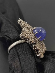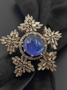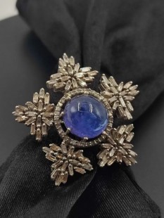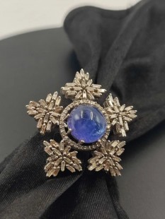 Baget Pırlanta Ve Tanzanit Yüzük. 925 Ayar Gümüş Pırlanta Yüzük.