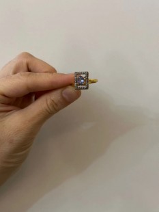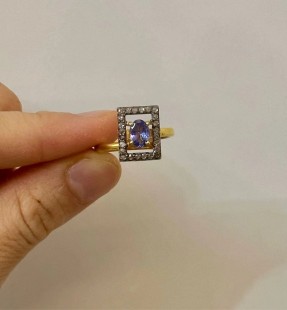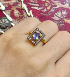 925 Gümüş, Doğal Tanzanit Taşlı Elmas Yüzük