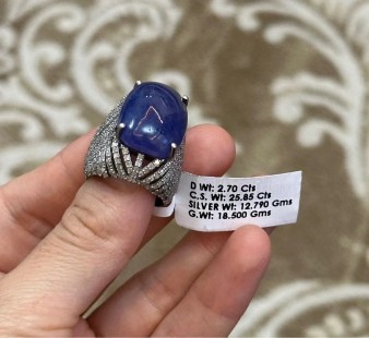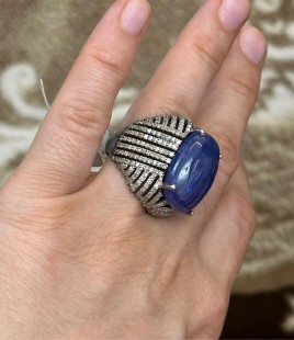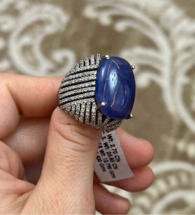 925 Gümüş, Doğal Tanzanit v Elmas Yüzük