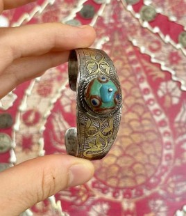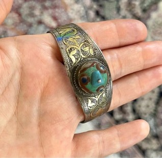 925 Ayar Gümüş Eski Türkmen El İşçilikli Orijinal Bileklik