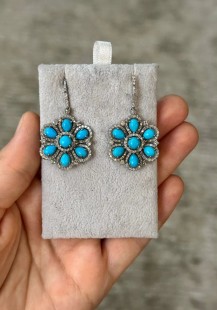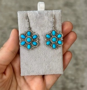 925 Gümüş, Doğal Turkuaz v Elmas Sallantılı Küpe