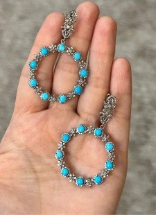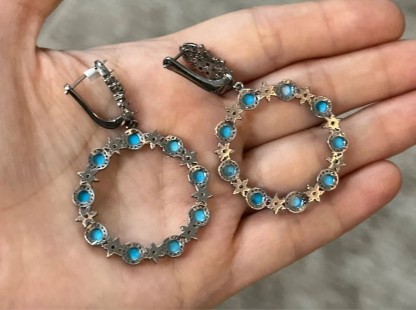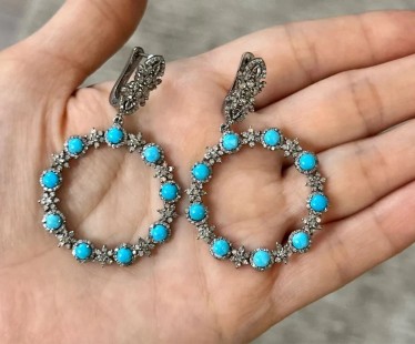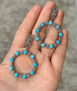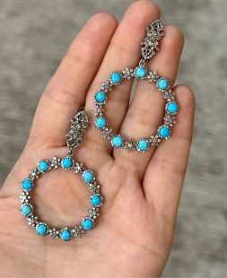 925 Gümüş, Doğal Turkuaz v Elmas Sallantılı Küpe