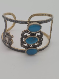 925 Ayar Gümüş, Elmas, Safir ve Turkuaz Taşlı Bileklik