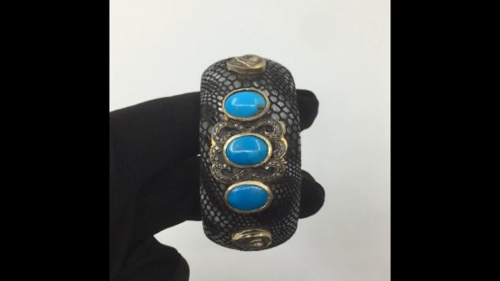 925 Ayar Gümüş, Elmas ve Turkuaz Taşlı Balık Derisi Bileklik