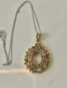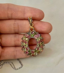 925 Gümüş Altın Kaplama, Turmalin v Elmas Kolye