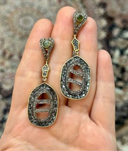 925 Gümüş, Turmalin v Siyah Kırıntı Elmas Küpe
