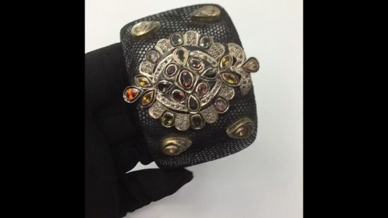 925 Ayar Gümüş, Elmas ve Turmalin Taşlı Balık Derisi Bileklik