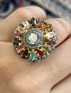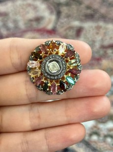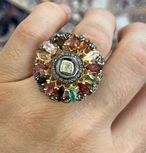 925 Gümüş, Doğal Turmalin v Elmas Yüzük