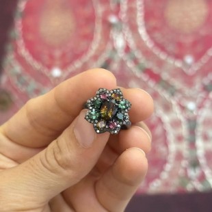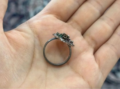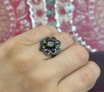 925 Gümüş, Doğal Turmalin Tasarımlı Elmas Yüzük