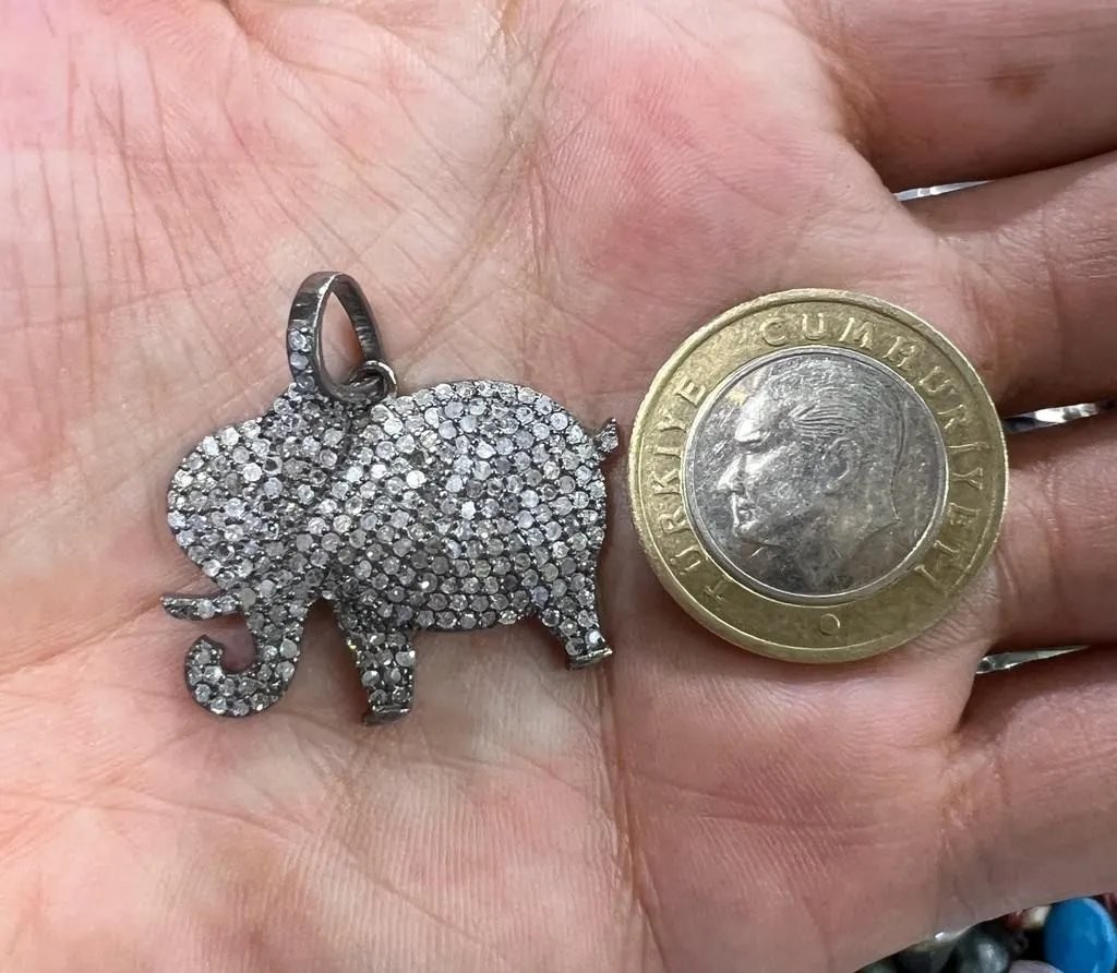 Figürlü ince işcilikli hakiki elmas kolye ucu.
