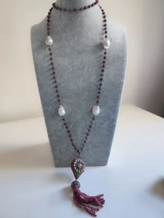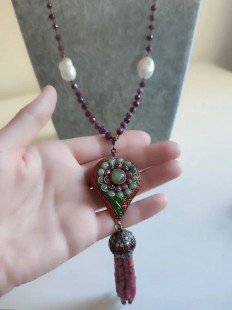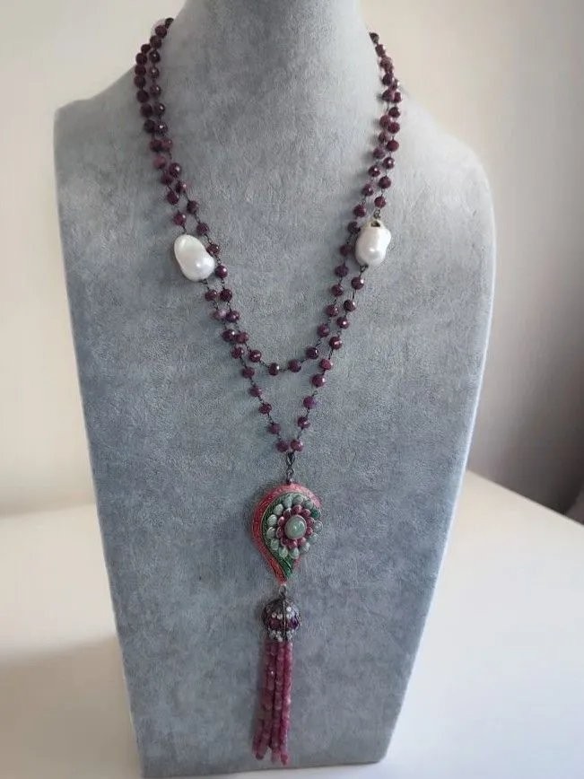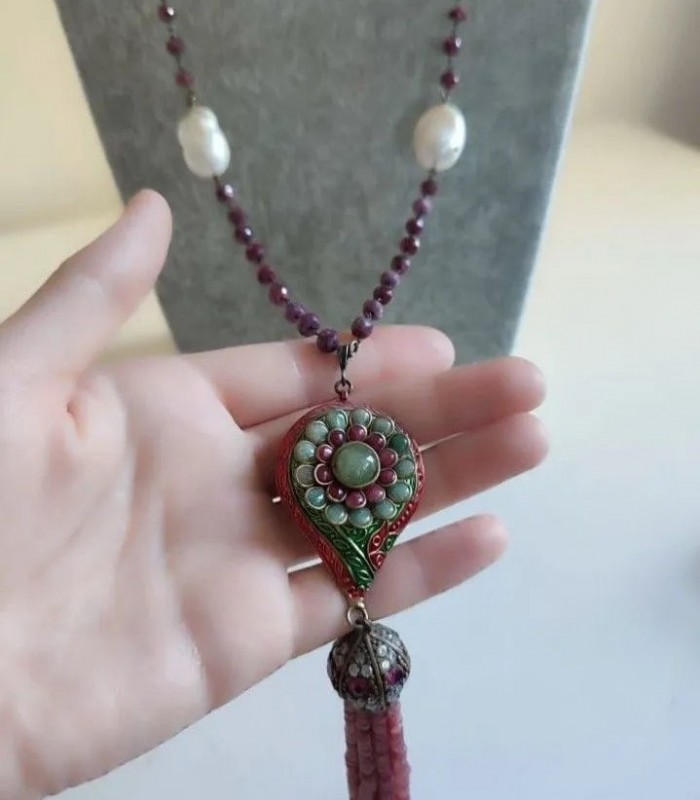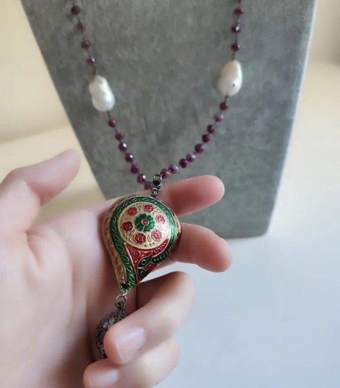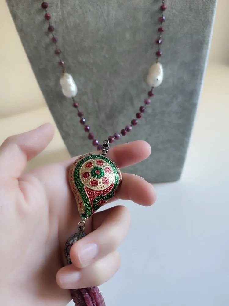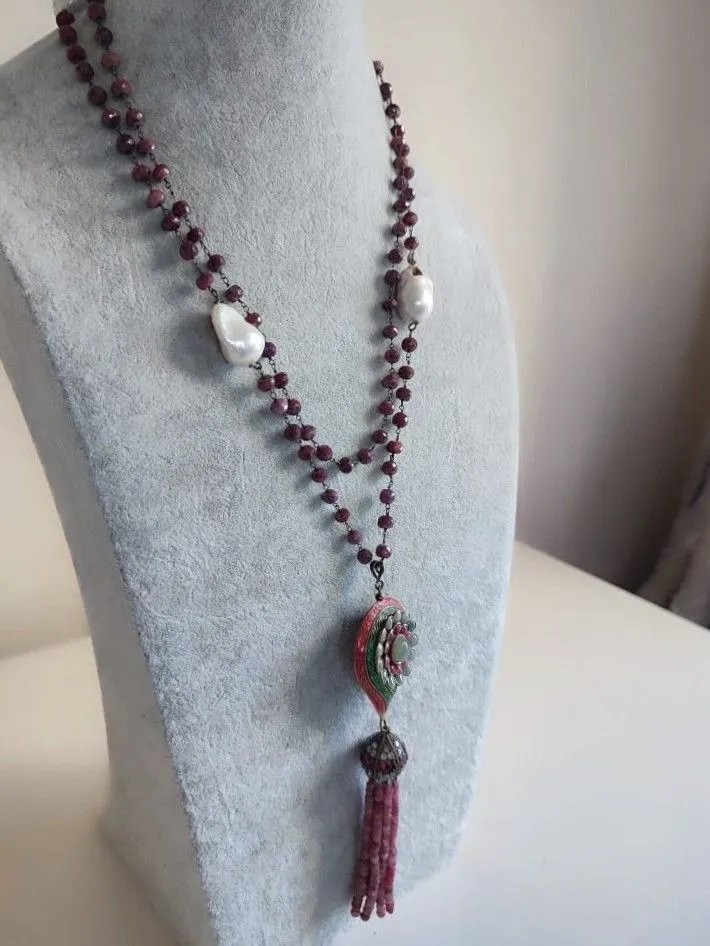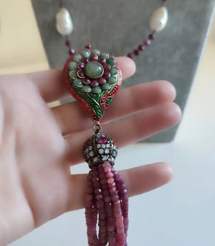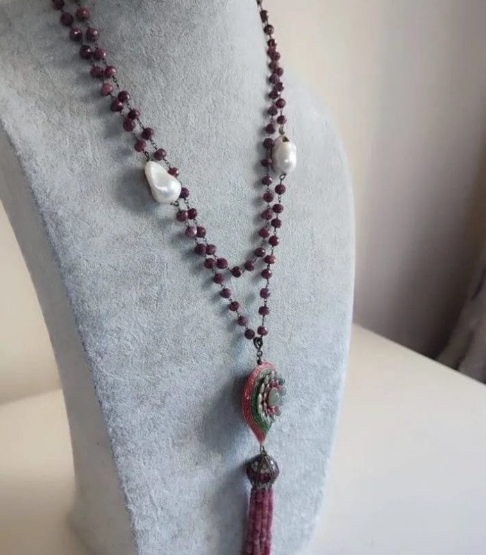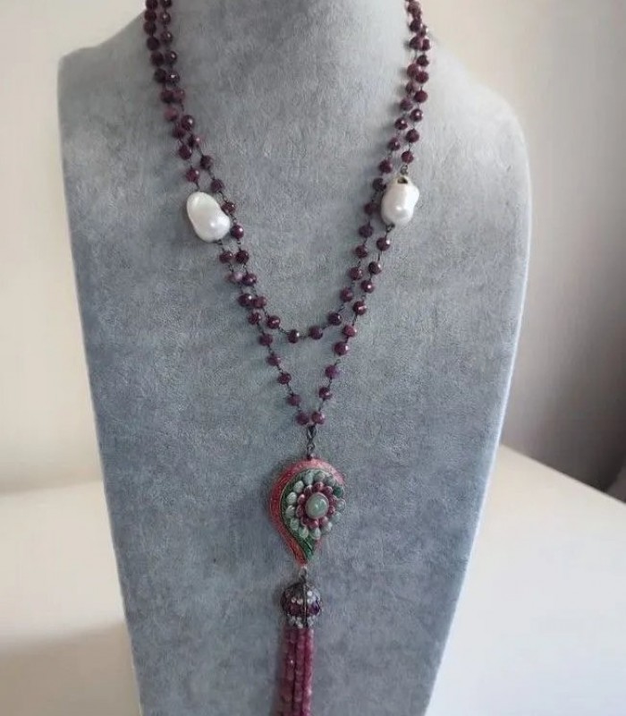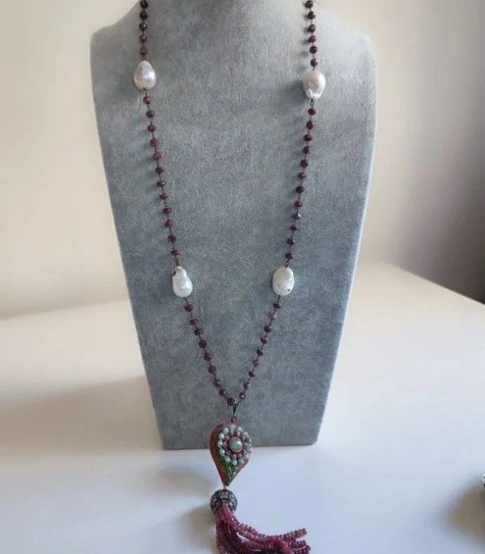Doğal Barok İncili, Kök Yakutlu ve Mine İşçilikli Harika Kolye.