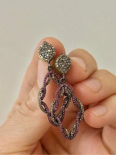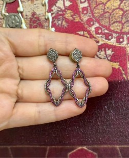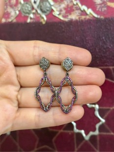 925 Ayar Gümüş, Yakut ve Elmas Küpe