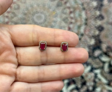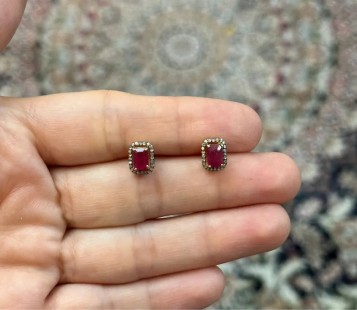 925 Gümüş, Doğal Yakut v Elmas Geçmeli Küpe
