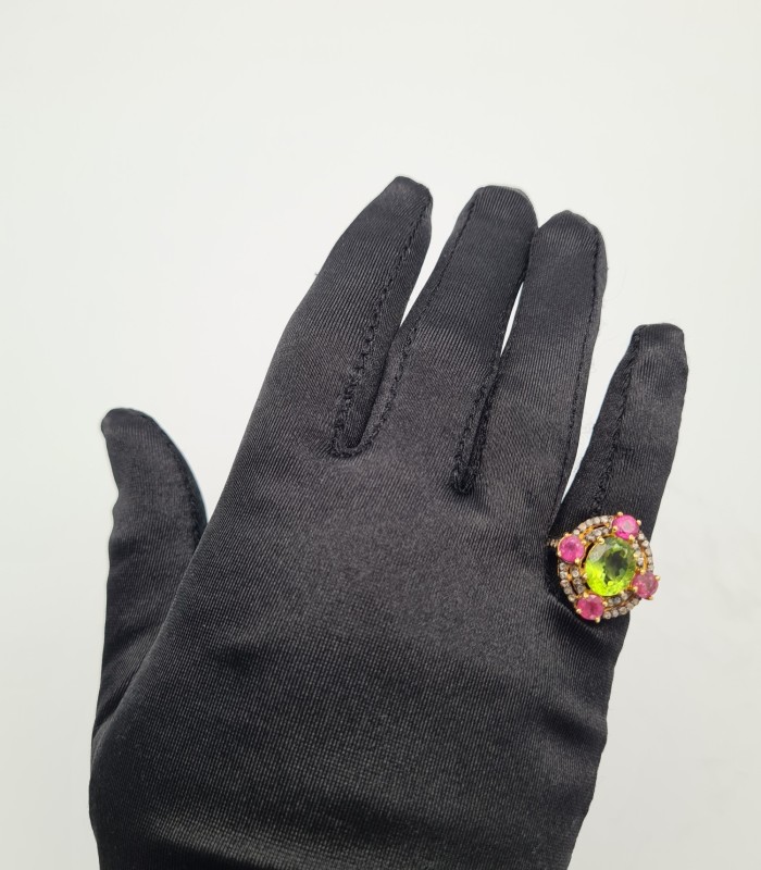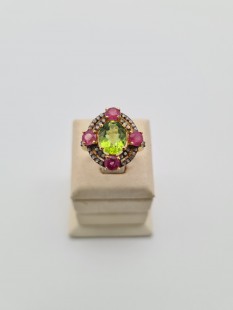 925 Ayar Gümüş, Yakut, Peridot ve Elmas Yüzük