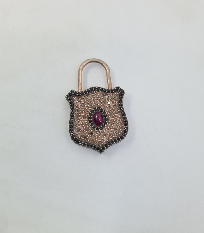 925 Ayar Gümüş Elmas Yakut ve Siyah Spinal Taşlı Kilit Kolye Ucu