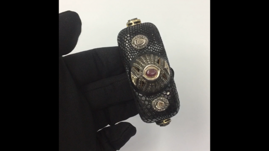 925 Ayar Gümüş, Elmas ve Yakut Taşlı Balık Derisi Bileklik