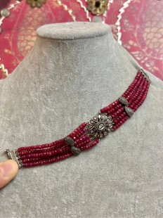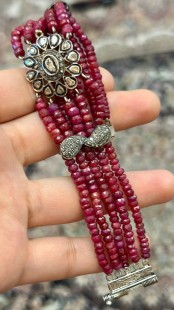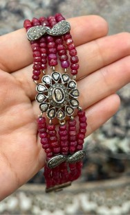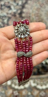 925 Gümüş, Doğal Kök Yakut v Polki Elmas Bileklik