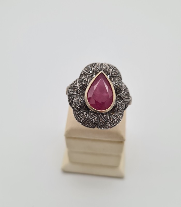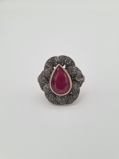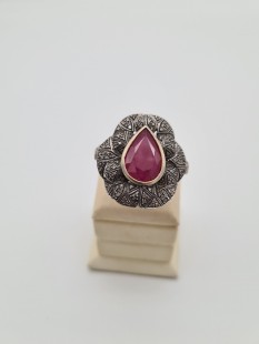 925 Ayar Gümüş, Yakut ve Elmas Yüzük