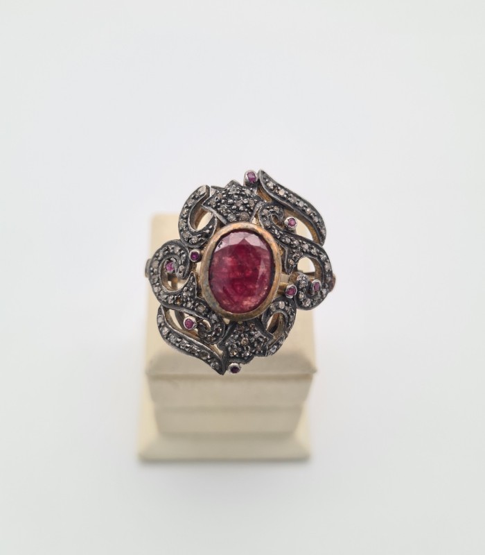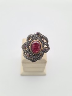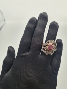 925 Ayar Gümüş, Yakut ve Elmas Yüzük