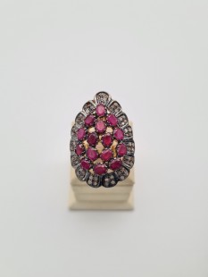 925 Ayar Gümüş, Yakut ve Elmas Yüzük