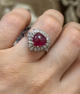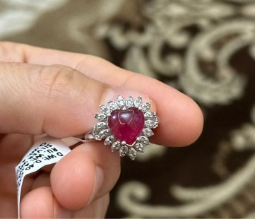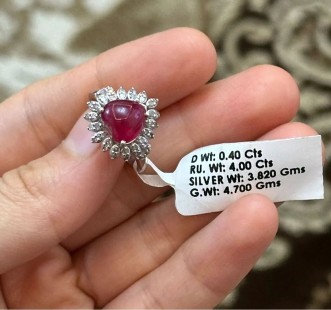 925 Gümüş, Doğal Yakut v Elmas Yüzük