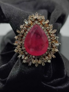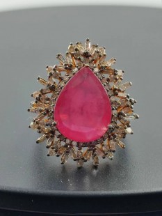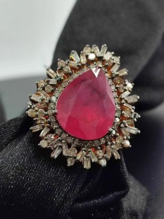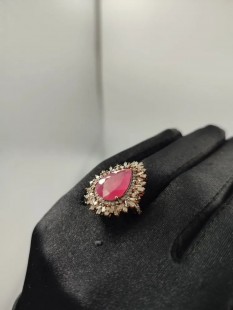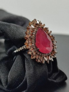 925 Gümüş, Yakut v Elmas Tasarım Yüzük