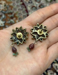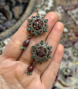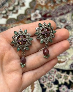 925 Gümüş, Doğal Zümrüt, Yakut ve Zirkon Tasarımlı Küpe