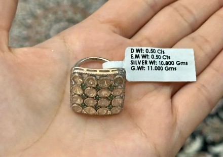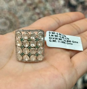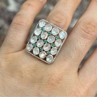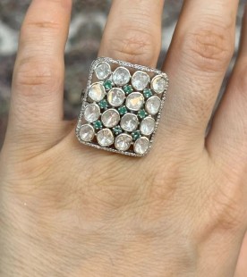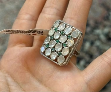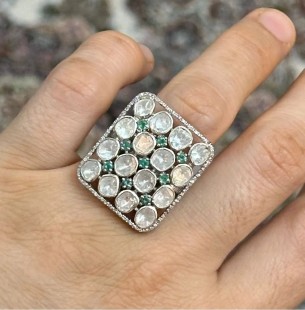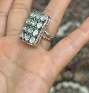 925 Gümüş, Doğal Zümrüt v Polki Elmas Yüzük