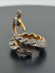 925 Gümüş Altın Kaplama v Elmas Yüzük