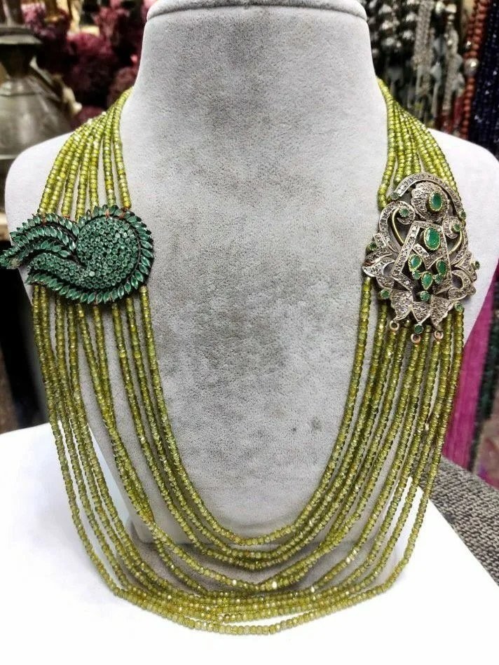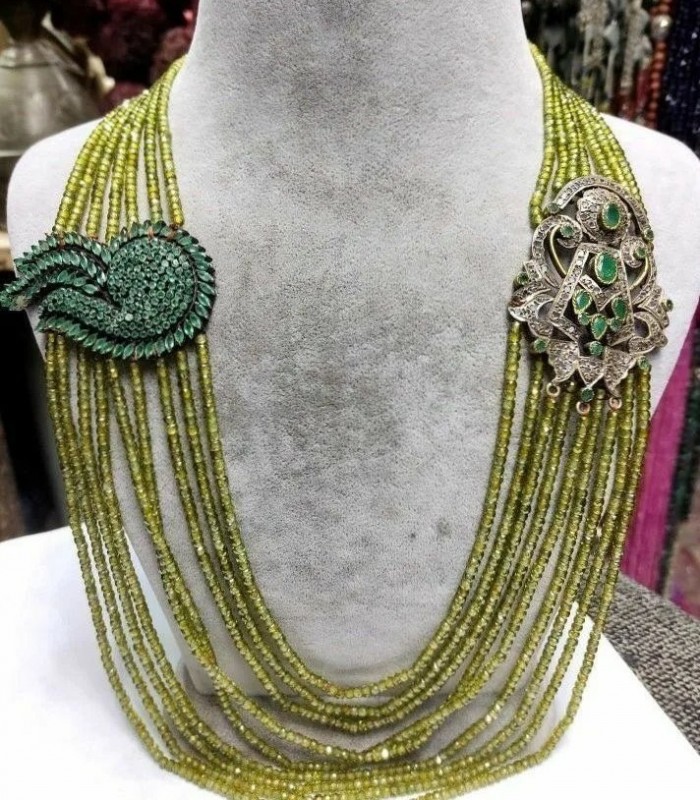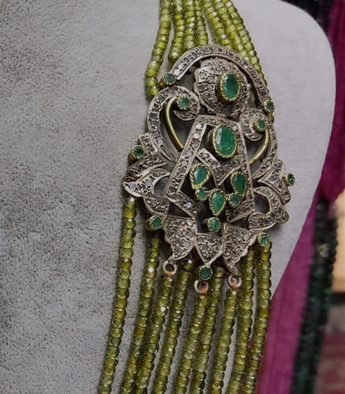 Doğal Beyaz Zirkon ve Has Zümrüt Kalite Taşlarından Oluşan İşçilikli Kolye.