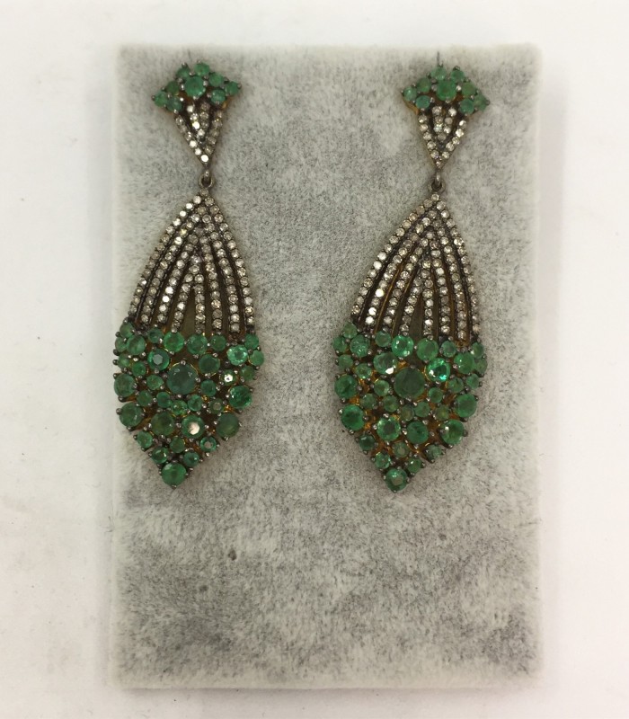 925 Ayar Gümüş, Zümrüt ve Elmas Küpe