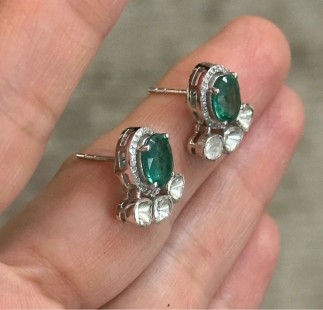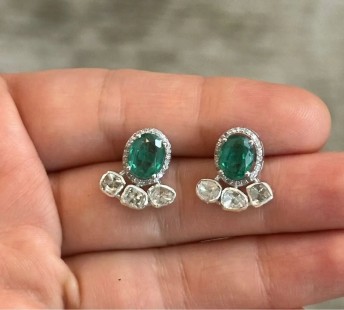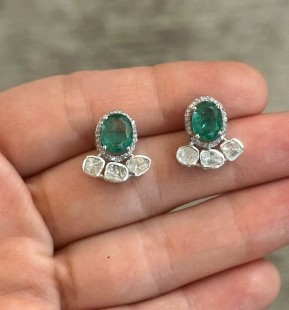 925 Gümüş, Doğal Zümrüt v Elmas Geçmeli Küpe
