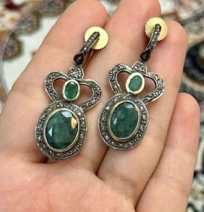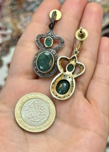 925 Ayar Gümüş Altın Kaplama, Gerçek Kök Zümrüt v Elmas Küpe