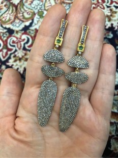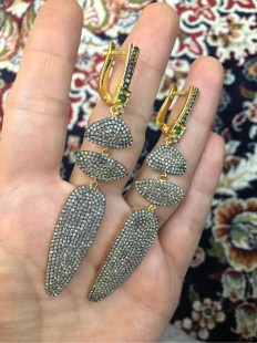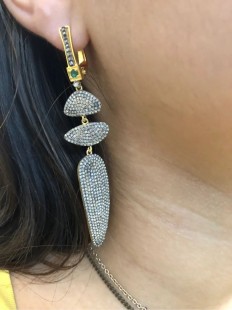 925 Gümüş, Zümrüt v Elmas Uzun Tasarım Şık Küpe