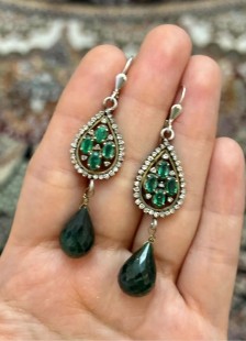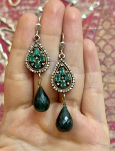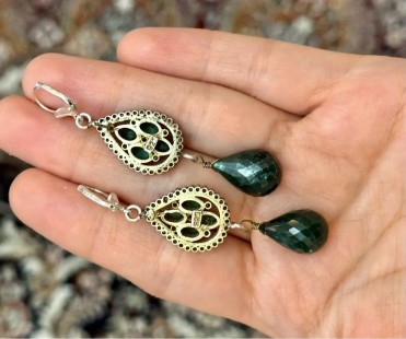 925 Gümüş, Zümrüt v Elmas Sallantılı Küpe