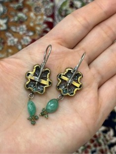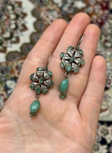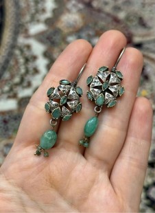 925 Gümüş, Doğal Has Zümrüt ve Beyaz Zirkon Taş Tasarımlı Küpe