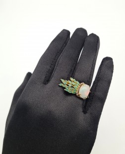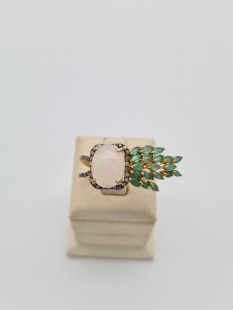 925 Ayar Gümüş, Zümrüt, Opal ve Elmas Yüzük