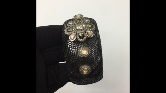 925 Ayar Gümüş, Elmas ve Zümrüt Taşlı Balık Derisi Bileklik
