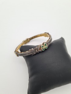 925 Ayar Gümüş, Elmas ve Zümrüt Taşlı Bileklik